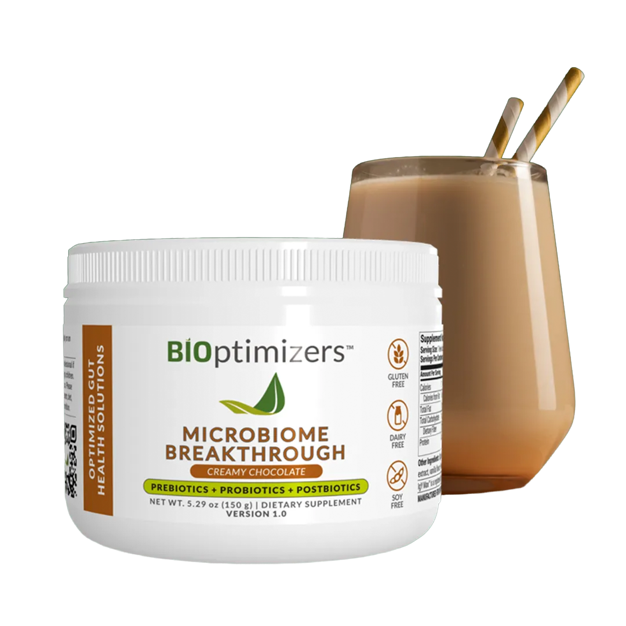 BIOptimizers Microbiome Breakthrough Creamy Chocolate (кремообразен шоколад) е комплексна формула за чревно здраве, която комбинира пробиотици, пребиотици и постбиотици с колаген и костен бульон за цялостна подкрепа на микробиома. Формулата подпомага баланса между „добрите“ и нежеланите бактерии и съдейства за поддържане на здрава чревна бариера. Благодарение на съставки като IgY Max®, лактобацилус щамове и хранителни субстрати за полезните бактерии, продуктът подпомага имунната система, усвояването на хранителни вещества и общото състояние на организма. Подходящ е за хора с чувствително храносмилане, подуване или натоварен начин на живот, като съчетава ефективност с приятен шоколадов вкус и удобен ежедневен прием.